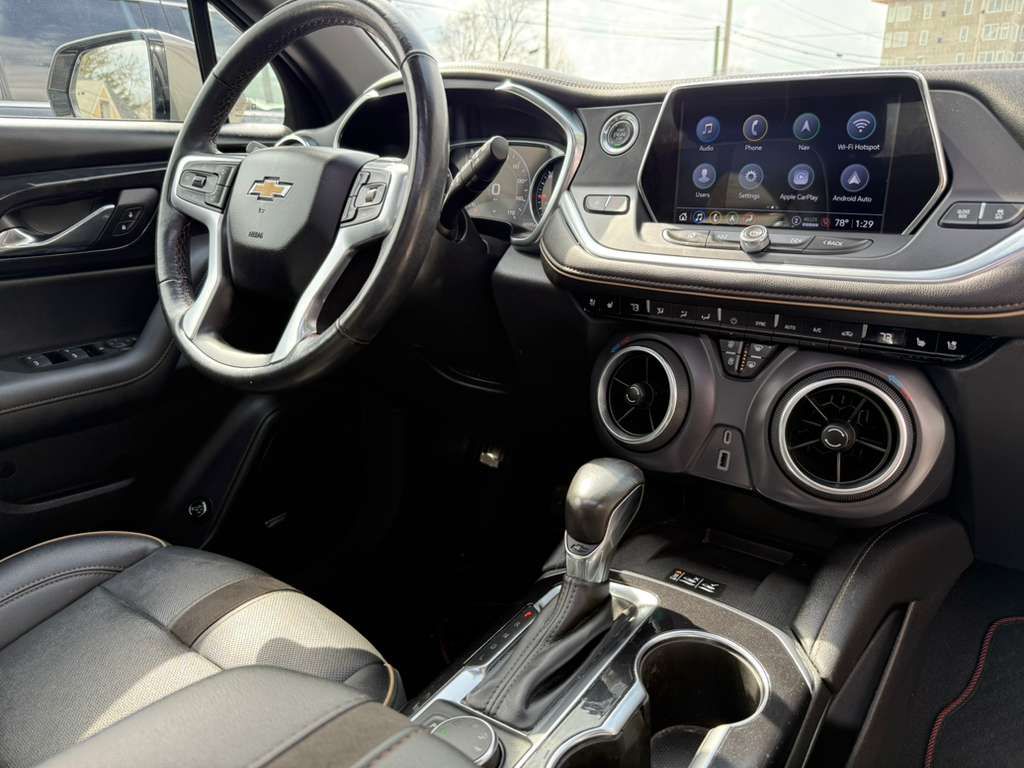 **One Owner** 2021 CHEVROLET BLAZER PREMIER 3.6L V6 F DOHC 24V GASOLINE ALL WHEEL DRIVE Comes with Awd..Blind Spot Warning..Panoramic Moonroof..Camera..Apple Carplay..Cruise Control..Navigation System..Premium Wheels..Cooled Seats..Heated Seats..Heated Steering Wheel..Heated Side Mirrors..Keyless Entry,Full functionality on the steering wheel..Traction Control..Power Seats..USB Audio Input..Parking Sensors..Bluetooth..Remote Engine Start..Wi-Fi Compatible.Auto Start/Stop..Dual-Zone Climate Control..On Demand 4WD..High-Intensity Headlights..Premium Sound System. 42k of miles with rebiult title due rear side Finance available Warranty available All inquiries are welcome at Brothers Auto Sales 30 E Morris ST, Indianapolis,IN,46225 317-661-1111 HABLAMOS ESPANOL